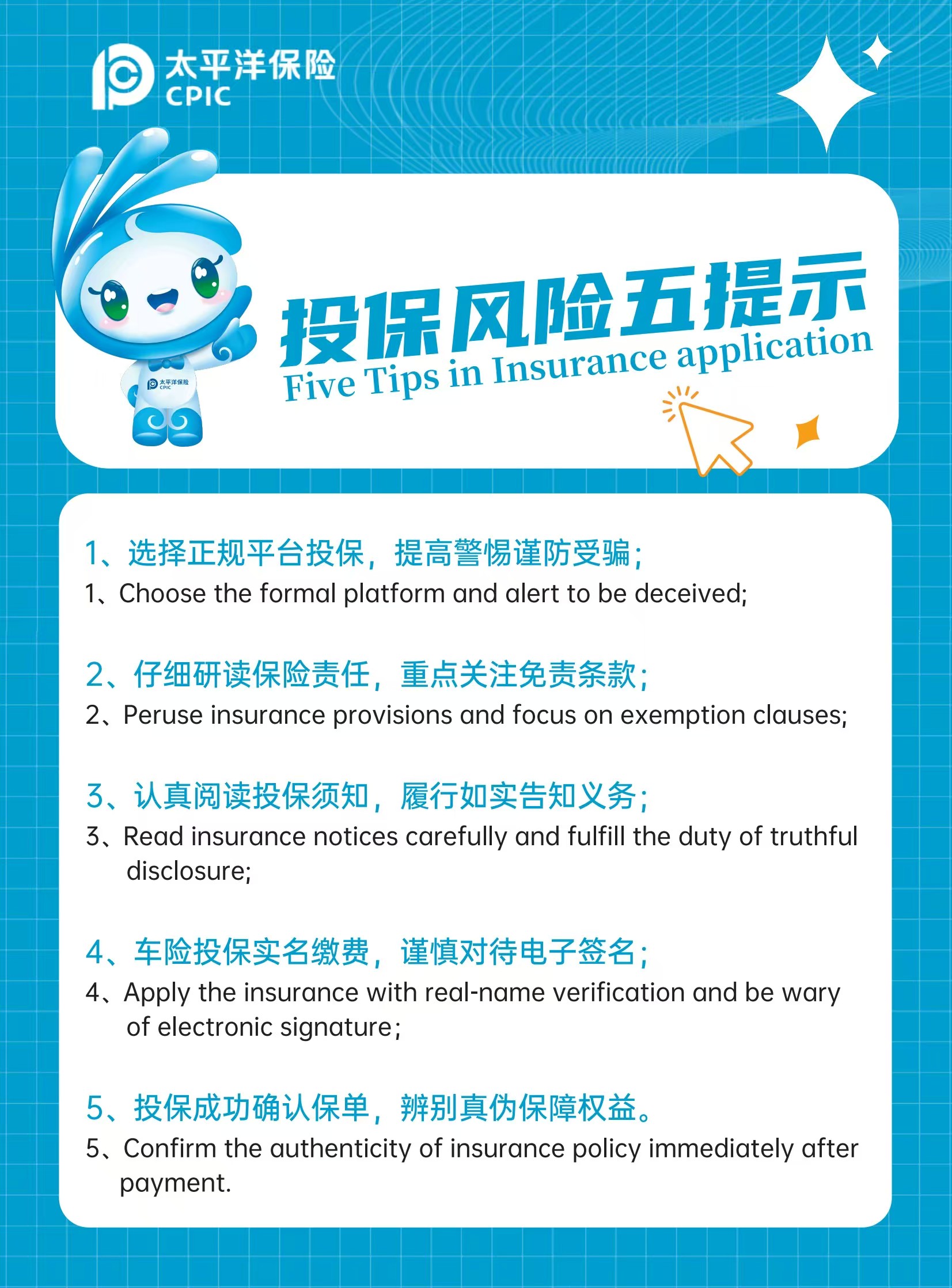 【風險提示】投保風險五提示(中英文版本)