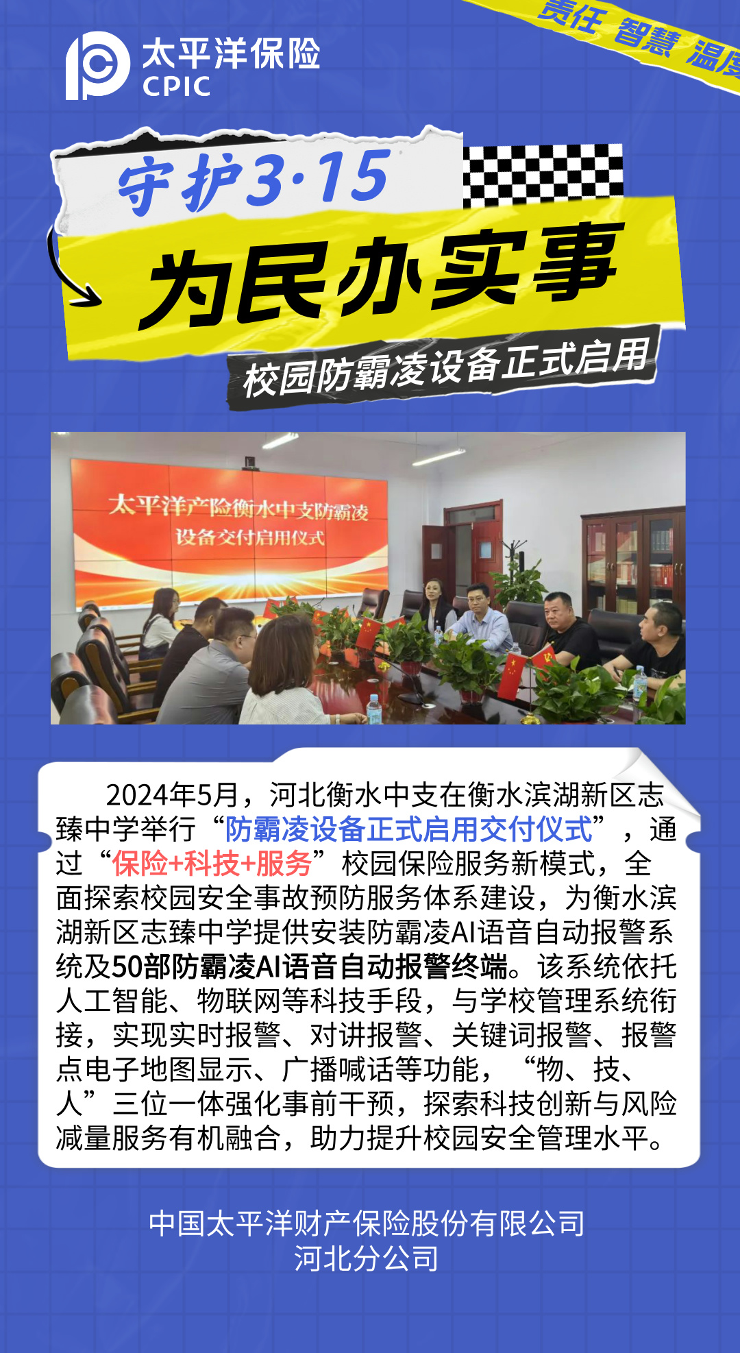 中國太保產險河北分公司為民辦實事之校園防霸陵設備正式啟用