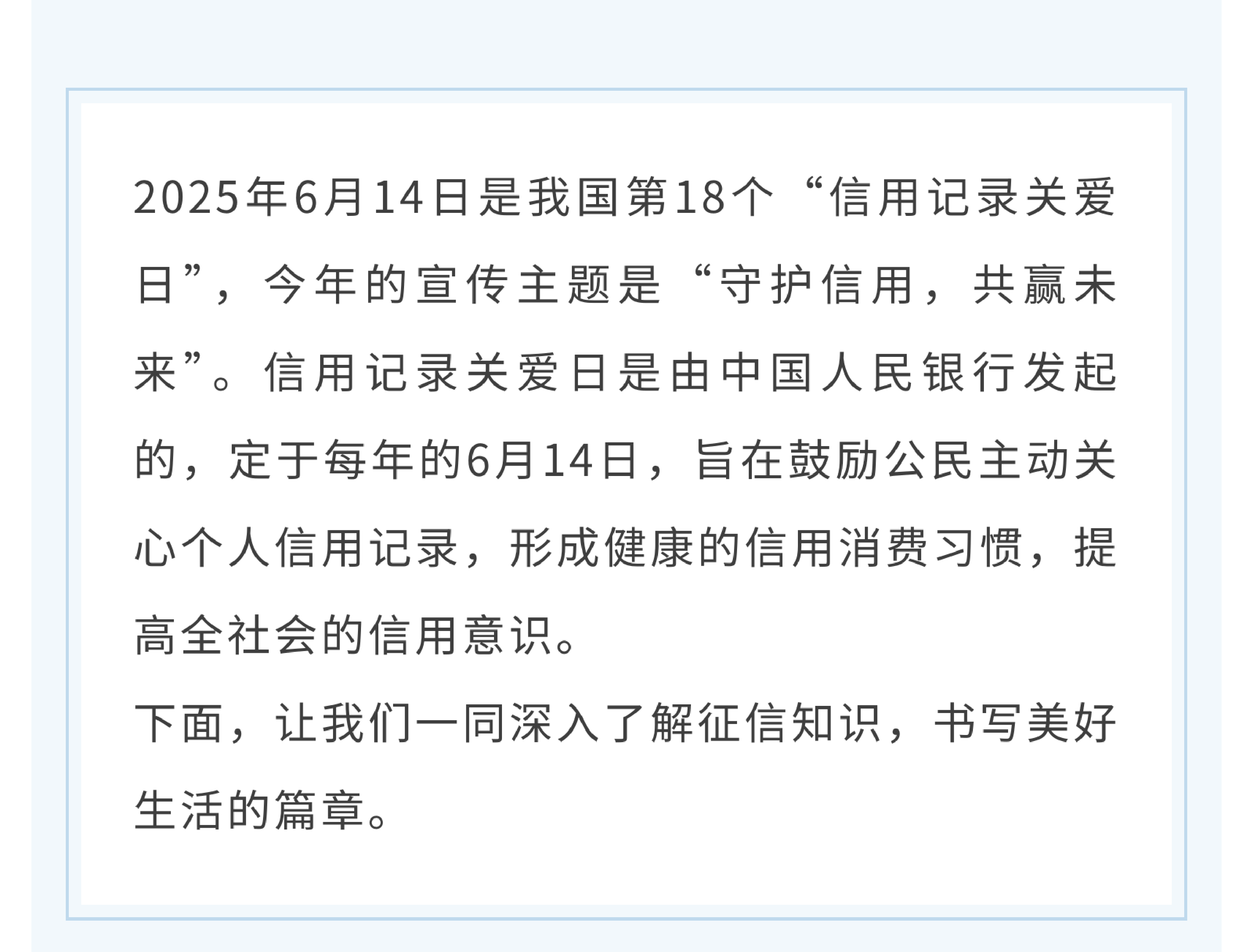 關愛征信丨守護信用,共贏未來——6·14信用記錄關愛日知識講堂