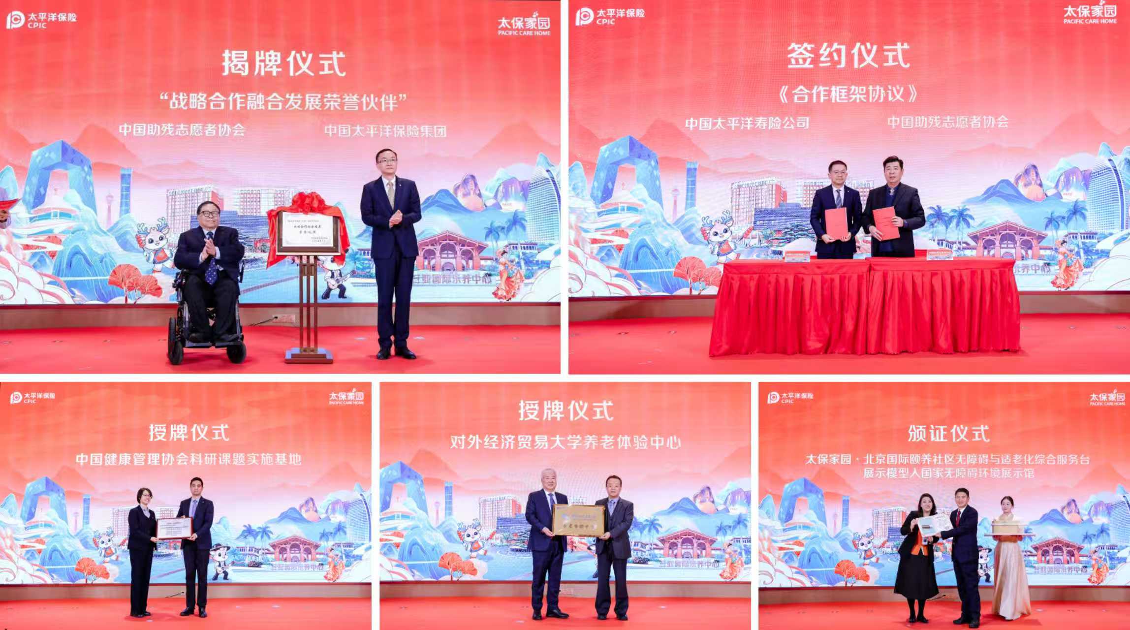 開(kāi)業(yè)活動(dòng)現(xiàn)場(chǎng),北京、三亞兩大會(huì)場(chǎng)還舉辦了與多個(gè)合作伙伴的簽約授牌儀式,政企校社攜手發(fā)力,為太保家園養(yǎng)老生態(tài)建設(shè)注入強(qiáng)勁合力。